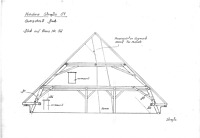 Der Giebel zu Haus Nr. 56 ist nur teilweise massiv. Die infolge der Dachabzimmerung entstandene Lücke im Dachprofil wurde zeitgleich mit dem Dach in Fachwerk geschlossen.
