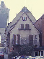 Ehemaliges zweistöckiges Wohnhaus mit Kellergewölbe und Giebeldach in Ecklage (Pfarrgasse/Kirchstraße), 1952 vollständig umgebaut und ein Friseurgeschäft im EG eingerichtet, 1987 ist das Gebäude ausgebrannt.