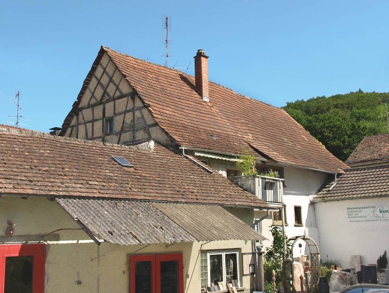 Holznagellöcher ertastet und ermittelt werden. Da die Latten keine Holzstifte aufweisen, dürften sie anfangs eine Hohlziegeldeckung getragen haben, die später offenbar als Gefachfüllung im Giebelfachwerk der nördlichen Erweiterung (siehe unten) weitere Verwendung gefunden hat.
