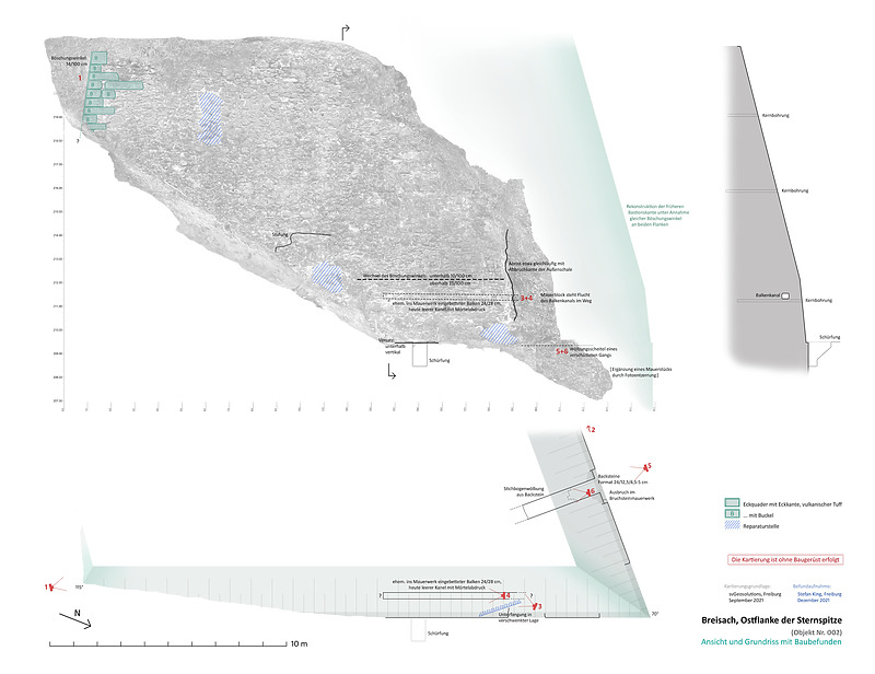 Ansicht und Grundriss mit Baubefunden / Stadtmauer, Sternspitze in 79206 Breisach am Rhein (12.2021, 09.2021 - S. King, svGeosolutions, Freiburg)