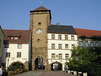 Mehrgeschossiger Massivbau, der einst das westliche Stadttor der mittelalterlichen Stadtbefestigung darstellte.