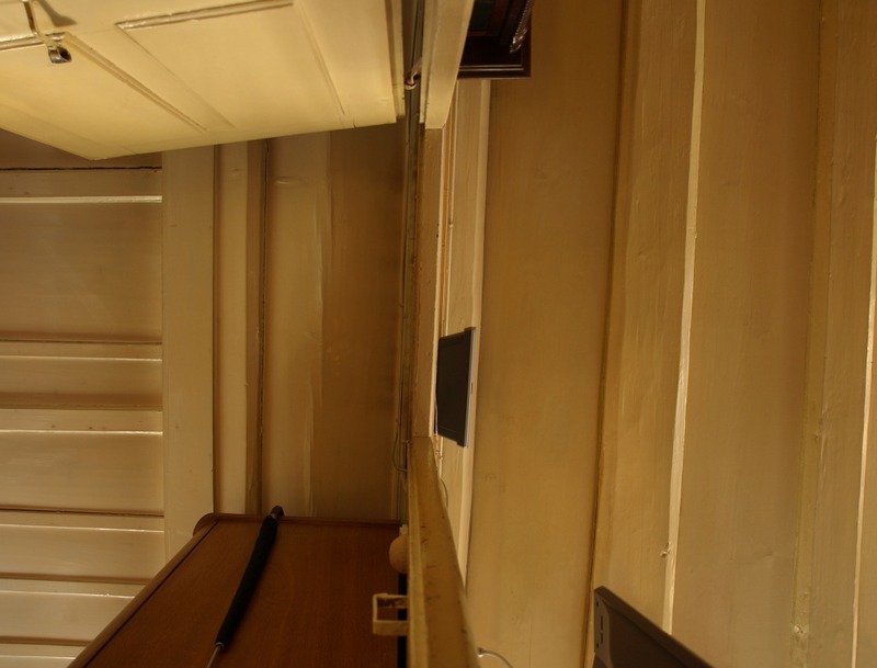 Die Diskussion führte zur Lösung die Kammer weitestgehend zu belassen und nur einen Teil ihrer Rückwand durch eine Verglasung zu ersetzen, zumal diese Bretter vor einigen Jahren ohnehin wegen Schadhaftigkeit erneuert worden waren. Als Nebenraum zur Stube könnte die Kammer künftig als Bibliothek, Lesezimmer, Esszimmer o.ä. in Gebrauch genommen werden.