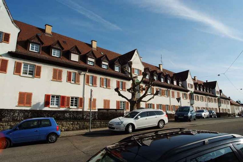 Der Wohnblock mit vier Eingängen und ursprünglich 24 Wohnungen liegt im Zentrum der Schönblicksiedlung in Stuttgart Nord an der Kreuzung der Friedrich-Ebert-Straße und der Wilhelm-Blos-Straße