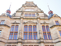 Reich verzierte Fassaden unter der Verwendung unterschiedlichster Techniken. Das Gebäude war als bauliches Lehrwerk für die Gewerbeschüler konzipert. Besonderheiten: