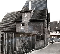 1805 umfangreiche Umbauten, Umbauten auch im 20. Jahrhundert. Der Vergleich der historischen Aufnahmen belegt, dass das ehemals einseitige Schopfwalmdach zum Satteldach umgebaut wird, durch Ausmauerung werden die Geschossauskragungen der südl. Giebelwand flächig geschlossen und im Bereich des Erdgeschosses eine Garage eingebaut.