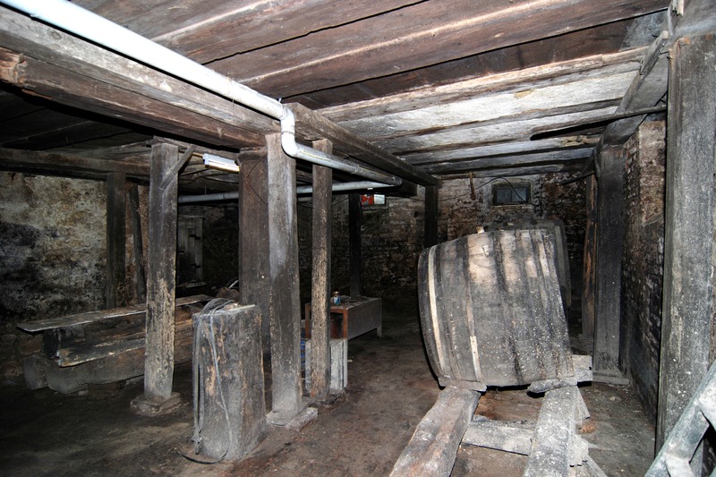 • Erste Nutzung: Aufgrund der Befundlage ist anzunehmen, dass das die 4. Querzone ursprünglich einen Torkel (Baumpresse) beherbergte und der Balkenkeller mit seinem breiten Außenzugang der Lagerung von Weinfässern diente.