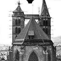 Ausschnitt Ansicht Ost, um 1970 / Ev. Stadtkirche St. Dionys in 73728 Esslingen am Neckar