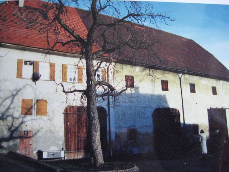 Die Zehntscheune wurde im Jahr 1799 erbaut und von Beginn an durch einen massiven Scheidgiebel in zwei Teile gegliedert: