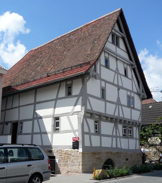Das Wohnhaus (Scheune und Stall der ehemaligen Hofanlage abgängig) wurde 1458 (d) unter Verwendung eines älteren Gewölbekellers errichtet. Es wurde als zweigeschossiges Fachwerkhaus mit Satteldach in Firstständerbauweise errichte.
