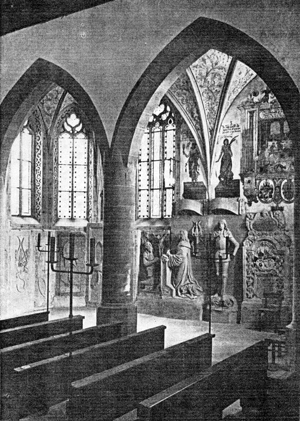 Wiederinstandsetzung und Regotisierung des eingestürzten Gewölbes der Grabkapelle durch Kirchenbaurat Behagel (a).