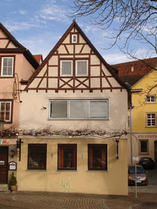 Im Haal 4: Über der Kellerbebauung erhebt sich ein dreigeschossiges Fachwerkhaus, es dient ebenso als Wohn- und Geschäftshaus (Germania).