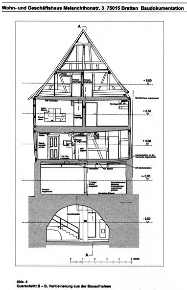 sog. Haus Strasser, Befundplan, Querschnitt B-B,