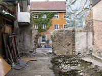 Abbruch des Gebäudes bis auf die Stadtmauerreste. (a)