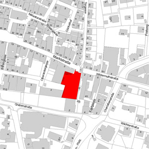 Fassadenabwicklung (71672 Marbach am Neckar, Marktstraße und Wildermuthstraße)