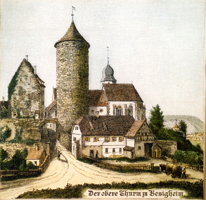 Neben den genannten Wehrtürmen bestand die Befestigungsanlage der Stadt Besigheim aus kleineren Rundtürmen und aus der Stadt führenden Toren, zu denen sich benachbart ein so genanntes Torwächterhäuschen befand. Im Jahr 1744 werden sieben Torhäuser vermerkt, die sich an der den historischen Altstadtkern umlaufenden Stadtmauer verteilten, darunter eins „beym Obern Thor“ . Bekanntermaßen wurde das Obere Tor 1581 durchbrochen, sodass dieses Datum einen Terminus ante quem für ein dort befindliches Torhaus vorgibt. Es sprechen mehrere Gründe dafür, dass dieses weitestgehend mit dem noch heute auf dem unteren Plateau befindlichen Wohnhaus, Pfarrgasse Nr. 15.