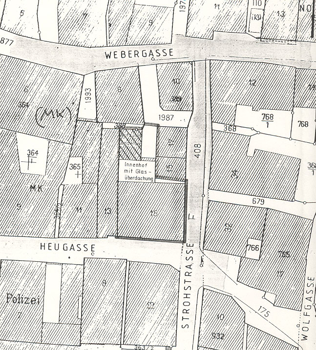 Die Heugasse ist eine langgezogene, in west-östlicher Richtung verlaufende Gasse, welche sich im nordöstlichen Bereich der historischen Altstadt befindet. Das untersuchte Gebäude steht im Winkel von Heugasse und Strohgasse.