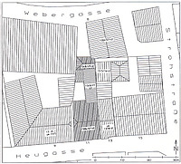 Die Westwand zeigt Steinmetzzeichen, die auf 1220 datierbar sind. Der Gewölbekeller gehörte ebenfalls der Vorgängerbebauung an, wurde jedoch erst später eingewölbt.