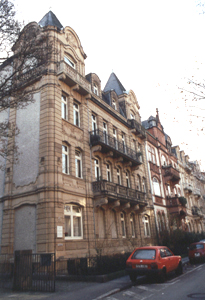 Das Wohn- und Geschäftshaus wurde 1906 von Friedrich Hartmeyer in Rokokoformen; es ist somit noch dem Historismus zuzuordnen. Der repräsentative Wohnbau ist vor allem durch Ecktürme mit pyramidalen Dächern geprägt und zeichnet sich durch seine strenge Gliederung in Vertikal- und Horizontalachsen aus. Im Erdgeschoss befindet sich eine Arztpraxis.