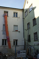 Heutiger Zugang im Erdgeschoss zum massiven Gebäudeteil.