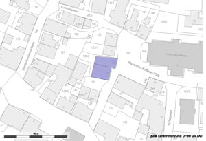 Das Gebäude steht gegenüber dem Turm der Schelklinger Stadtkirche am oberen Ende der Kirchgasse.