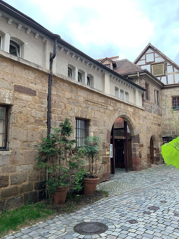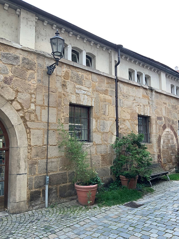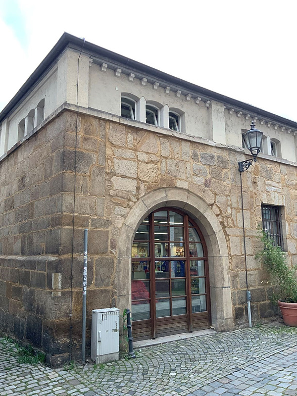 Der im östlichen Hallenbereich integrierte Verbindungsbau zwischen Kutschersaal und Verbindungsbau Ost zeigt am Fenstergewände ein Steinmetzzeichen, das um 1500 datiert werden kann.
