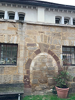 Die geschlossenen Spitzbögen im Wandbereich gehören sehr wahrscheinlich zu einer 1770 abgebrochenen Kapelle. Die restlichen Öffnungen im Erdgeschoss sind auf Maßnahmen der 1950er Jahre zurückzuführen. Der Hallenneubau des 19. Jahrhunderts dominiert das Obergeschoss.