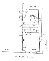 Im gassenseitigen Giebel haben sich Fensteröffnungen verschiedener Zeitstellungen erhalten. Während das östliche Fenster wohl der Zeit um 1602 zuzuordnen ist, hat sich unterhalb des südlichen Fensters eine Fensternische aus der Erbauungszeit erhalten. Sie wird von einem profilierten Eichensturz aus den Jahren 1361/62 (d) überspannt. Der Sturzbalken liegt ca. 45cm über dem heutigen Dachgebälk und deutet so, im Vergleich zur heutigen Vertikalstruktur eine andere Höhenentwicklung an.