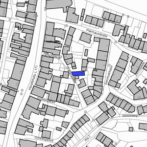 Das Gebäude liegt im Zentrum Hüfingens am ehemaligen Wassergraben der einstigen Tiefburg.