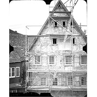 Die erstgenannte Maßnahme dokumentiert gegenüber den kleineren Öffnungen des 13./14. Jh. ein gesteigertes Bedürfnis nach Helligkeit, während der Einbau der Ladeluken zumindest den obersten Fachwerkstock und das gesamte Dachwerk als Lagerraum ausweisen. In diesem Zusammenhang steht auch die Verstärkung des Dachwerkes durch den Einbau von stehenden Stühlen, eine Maßnahme, die im rückwärtigen älteren Dachabschnitt nicht notwendig wurde, da hier schon von Anfang an ein stehendes Stuhlgerüst abgezimmert worden war.